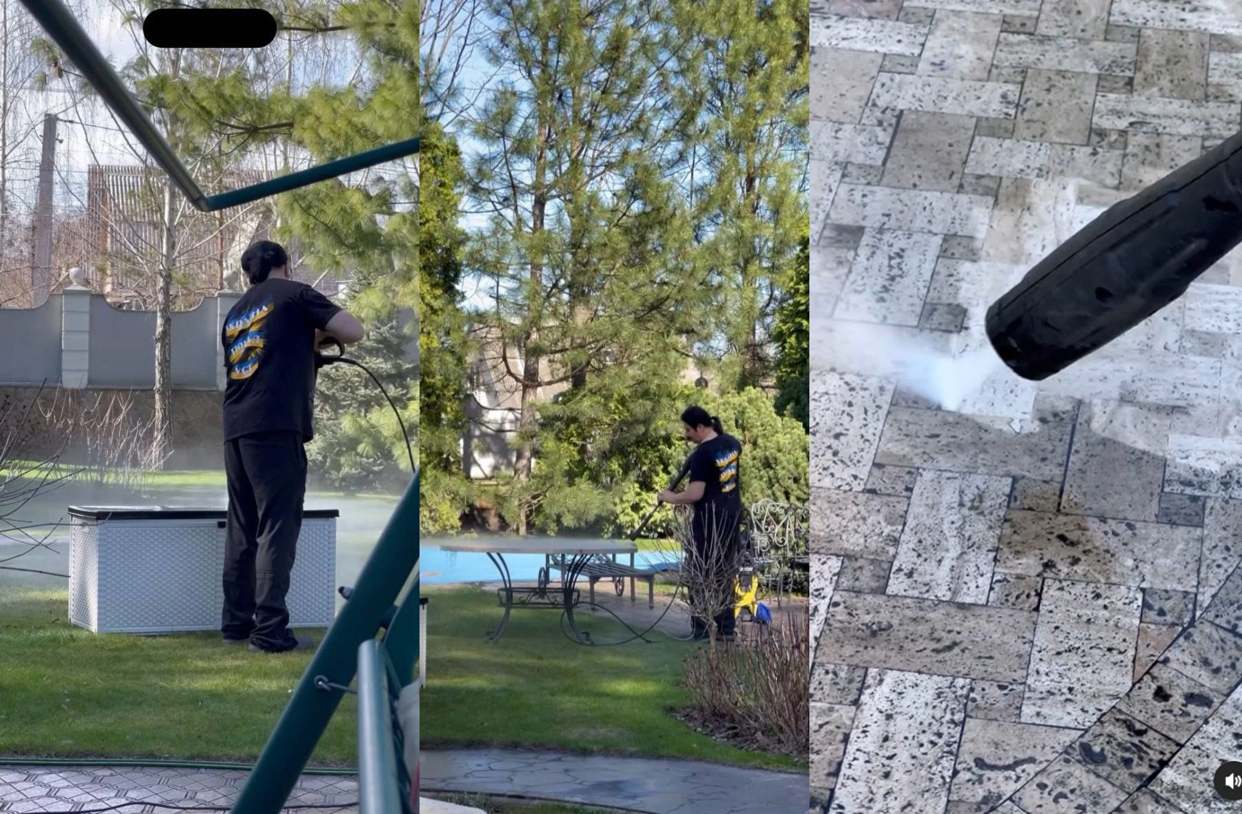 Щойно настали погожі весняні дні, як Павло Зібров влаштував садовий десант. Будинок в артиста хоч і просторий, але сидіти в середині не хотілося. Тож озброївся шлангом із високим тиском і нумо відмивати садові меблі, що за зиму встигли припасти пилом.
