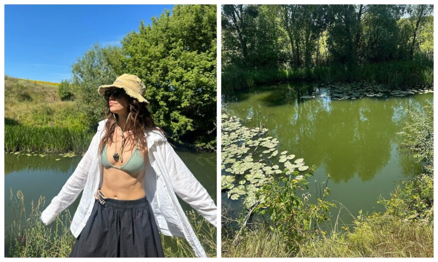 У дорослому віці вона вирішила повторити цей досвід і повернутись до села. Надя Дорофєєва продемонструвала фотографії, на яких видно, як вона насолоджується відпочинком біля річки та проводить час зі своїми рідними людьми.