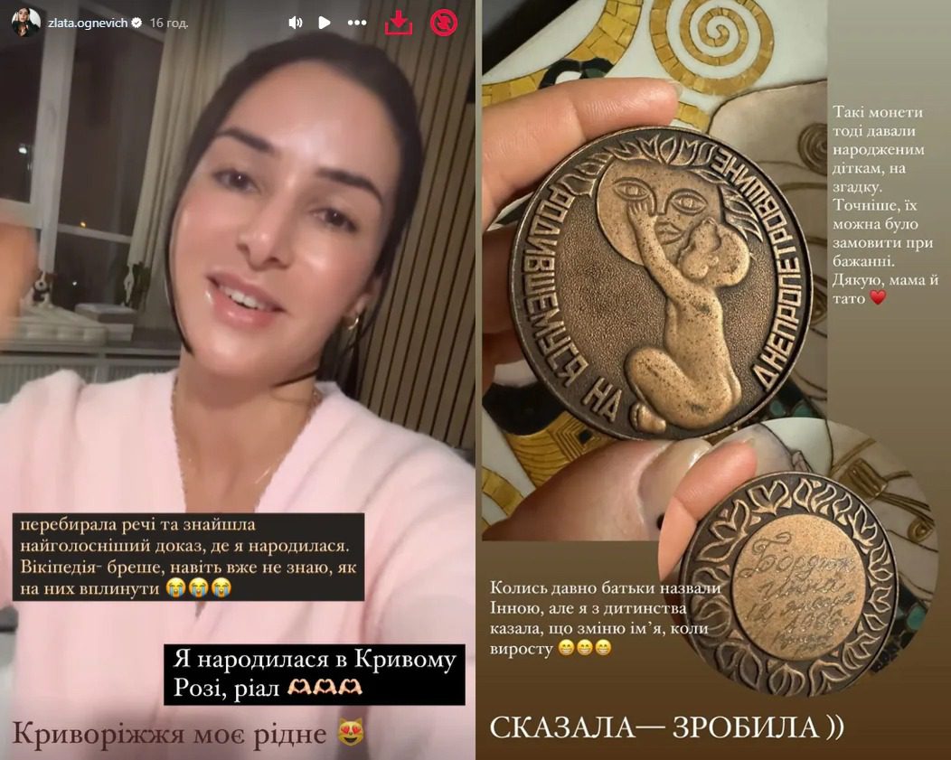 Щоб довести людям, що народилася саме в Кривому Розі, де мешкала її бабуся, зірка навіть перетрусила домашні архіви. Робила це не марно – знайшла докази. Злата показала медаль із написом російською: “Родившемуся на Днепропетровщине”.