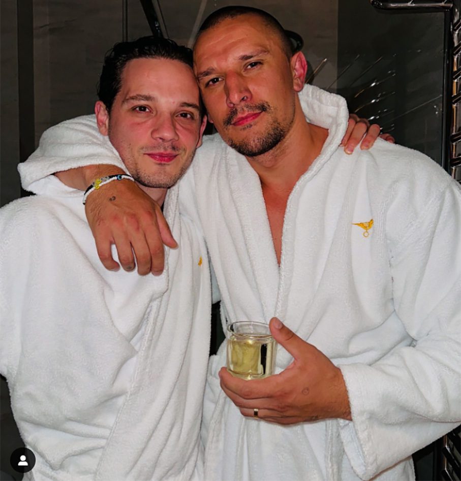На цей раз приводів для підозр з’явилося ще більше. Адже чоловіки перебувають взагалі у банних халатах, а Цимбалюк ще й повну чарчину тримає в руках, підписавши фото: