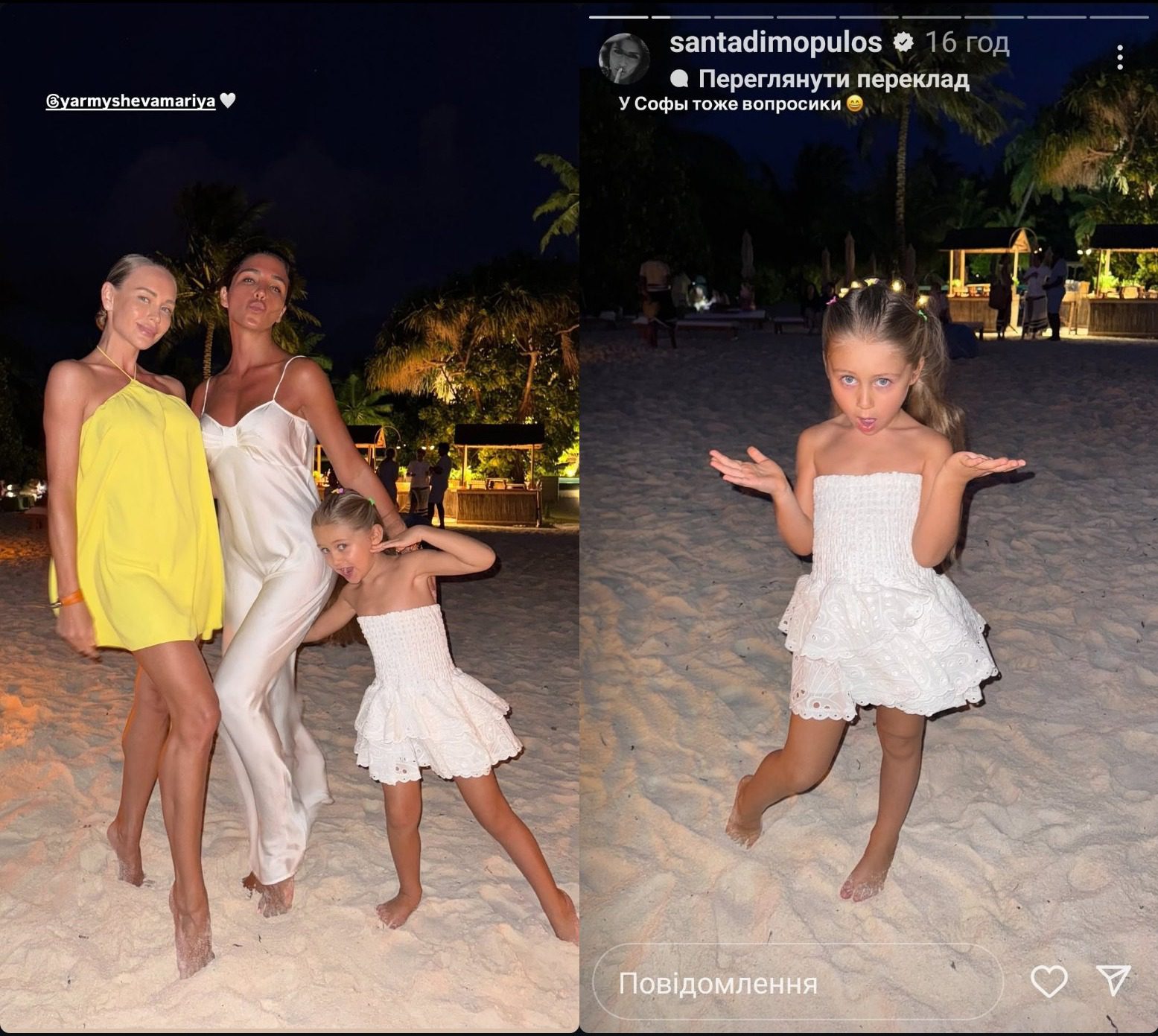 Судячи зі світлин із Мальдівів, Санта відбула туди дівочою компанією без будь-яких чоловіків. Можливо, під час відпочинку й вдасться познайомитися з черговим мільйонером та захопити його своєю неземною красою.
