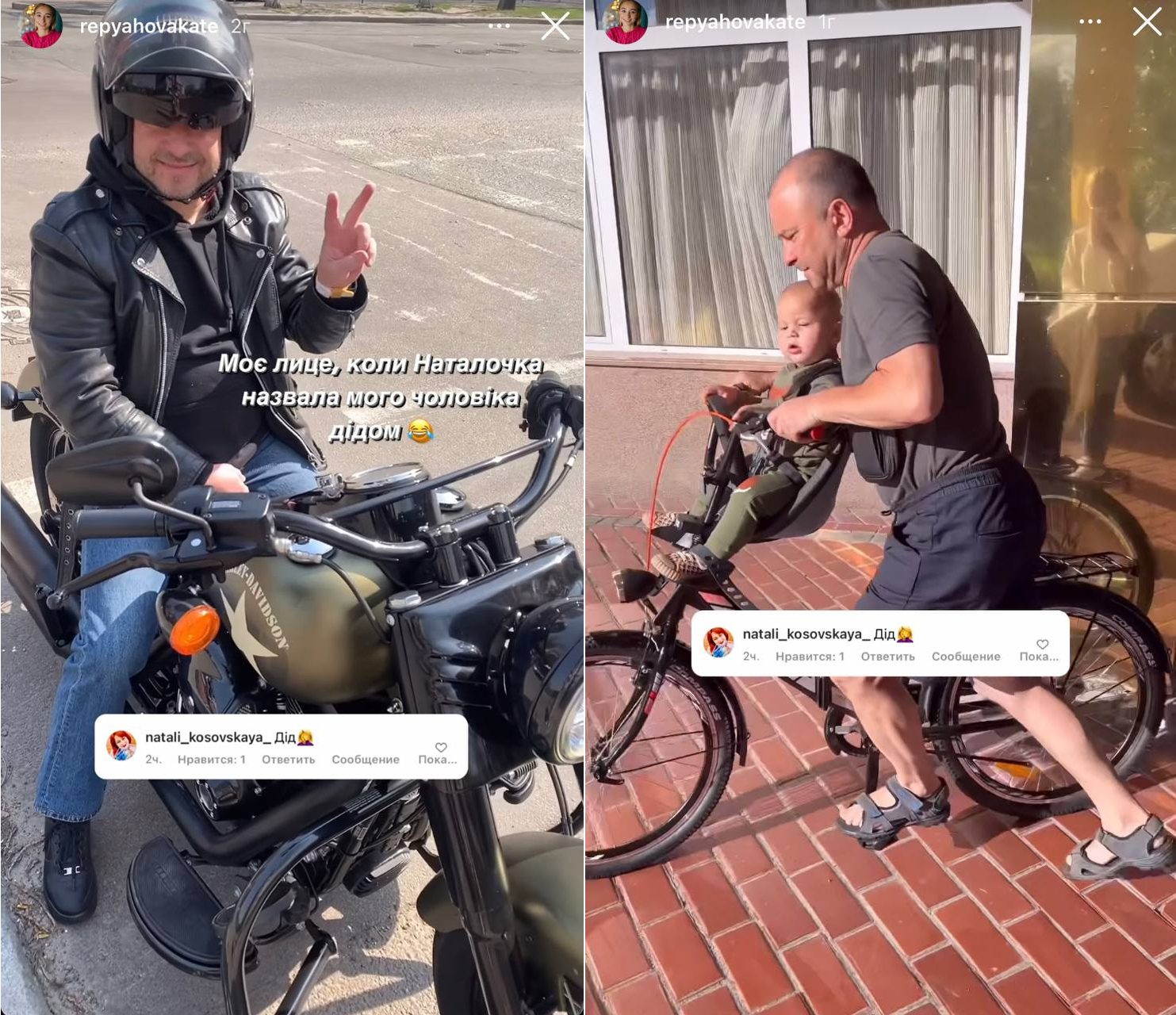 Чоловік тримає себе у формі й качає прес, катає на велосипеді свого найменшого нащадка Мишка, а ще залюбки їздить із вітерцем на байку. Отже, Катерина Реп’яхова певна, що благовірний перебуває у найкращій формі. Недарма ж за ним шаленіють натовпи юних фанаток.