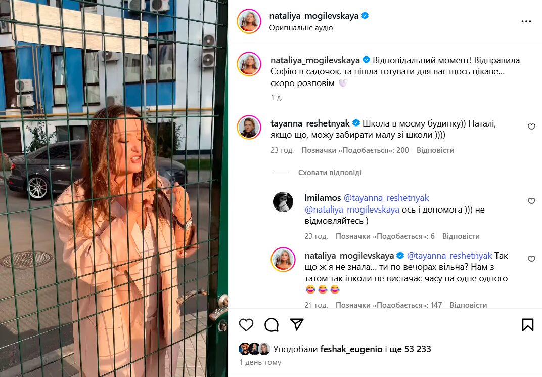 Наталія Могилевська зібрала своїх донечок Мішель та Софійку до школи. Оскільки старшій дитині вже минуло 13 років, вона 1 вересня пішла до ліцею. Мішель визначилася з майбутньою професією, але матуся поки вирішила не озвучувати на загал, ким вона стане.