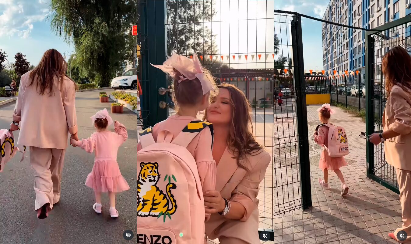 Її молодшій сестричці прийшла черга йти в дитсадок. Пані Наталія сама провела Софійку до воріт навчального закладу. Мала вбралася у все рожеве – сукню, бантики й навіть рюкзачок.