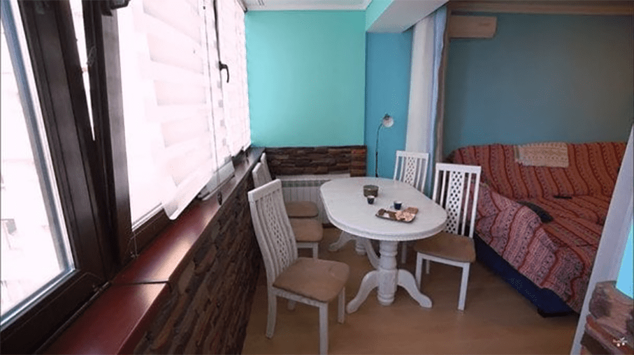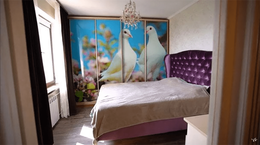 У спальні окрім великого ліжка впадає в око шафа з зображенням білих голубів. Цей принт нагадує кримцю про батька, який залюбки розводив цих птахів. А з балкона можна помилуватися гарним столичним краєвидом та Лаврою.