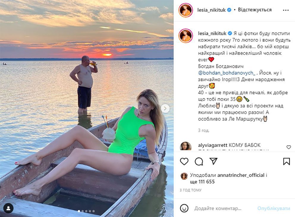 Леся пояснила, що Богданович – її друг. Преса дійсно почала писати, що Нікітюк знайшла собі чоловіка з Тернополя, в якого двоє дітей, і він працює водієм маршрутки. Після цього чоловіку в Київ зателефонував тесть і поцікавився, чи правда він крутить шури-мури з Лесею. А почувши у відповідь ні, зневажливо докинув: “Слабак!”