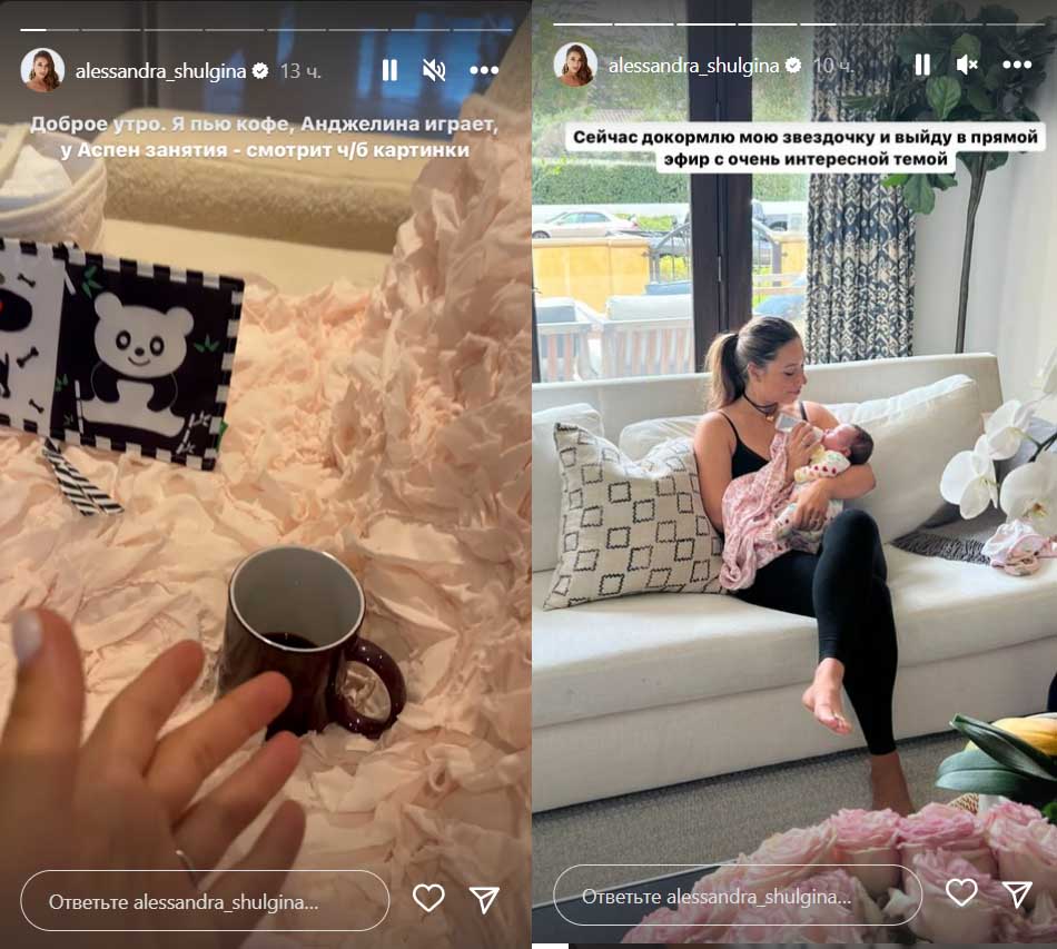 Мама за цей час встигає нашвидкуруч випити кави й приступає до годування немовлятка, якому немає ще й місяця. Після цього обіцяє підписницям зробити прямий ефір, для якого вже й тему відповідну підібрала.
