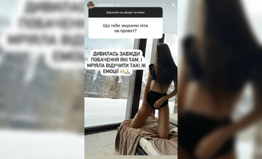 Підписники продовжили серію запитань проханням розповісти, чому дівчина вирішила пробуватись на участь у “Холостяку”. Так, Саша зізналась, що завжди дивилась телепроєкт та мріяла побувати на таких самих романтичних побаченнях і відчути ці емоції. Погорєлова додала до відповіді фотографію, на якій позує біля вікна з засніженим краєвидом.