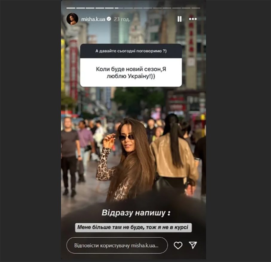 Хто це буде, поки тримається в суворій таємниці. Та не менше цікавить загал, у чому причина звільнення Мішиної. Коли звернулися до Ксенії з питанням, коли вийде новий сезон, вона відказала: