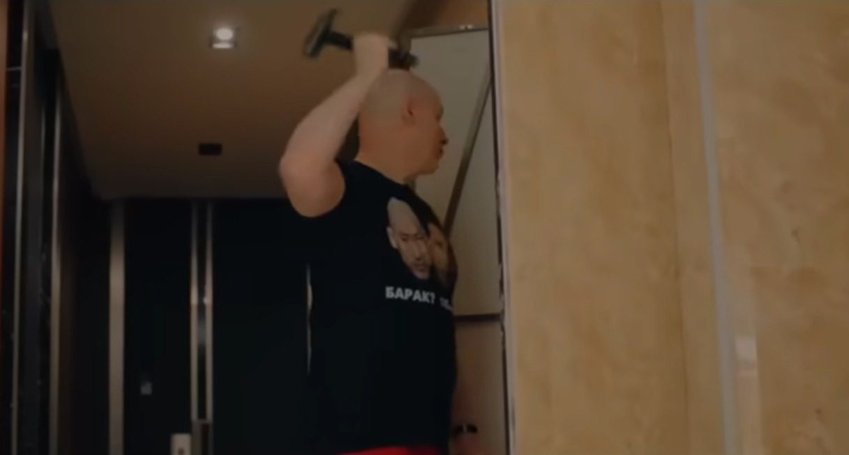 Саме в цей момент на порозі квартири з’являється сусід Дмитро Гордон, який люб’язно просить позичити молоток і вирубає войовничим сторонам світло. Звісно, комедія завершується хепіендом, але до цього треба ще дожити…