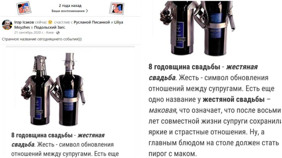 Чоловік Руслани Писанки зворушив спогадами про річницю їхнього весілля21 вересня Руслана Писанка та Ігор Ісаков могли відсвяткувати 10-ту річницю весілля. Цього дня вдівець Писанки опублікував на своїй сторінці Фейсбук публікацію, яку зробив 2 роки тому. Тоді чоловік оприлюднив пояснення, чому 8-та річниця сімейного життя називається жерстяною або маковою.