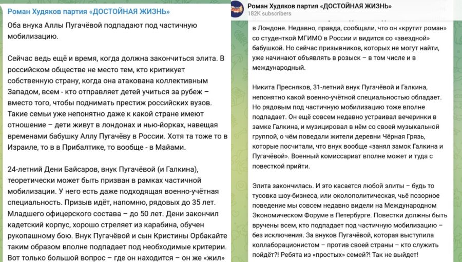 Зараз призовників. яких не можуть знайти, вже починають оголошувати у розшук. Повістки повинні бути вручені всім, хто підпадає під часткову мобілізацію. За онуків Пугачової, яка виступила колабораціоністом хто служити піде?