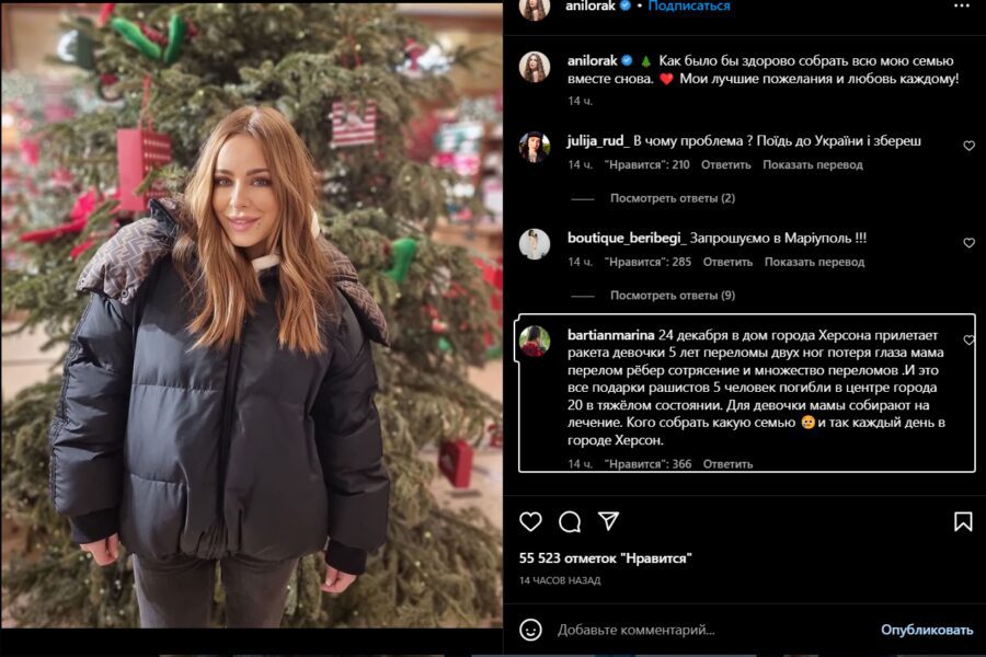 Цей допис викликав купу критики і сарказму в коментарях. Українці запросили співачку відвідати Батьківщину і сповна відчути, що тут творить країна-терористка, в якій вона зараз живе.