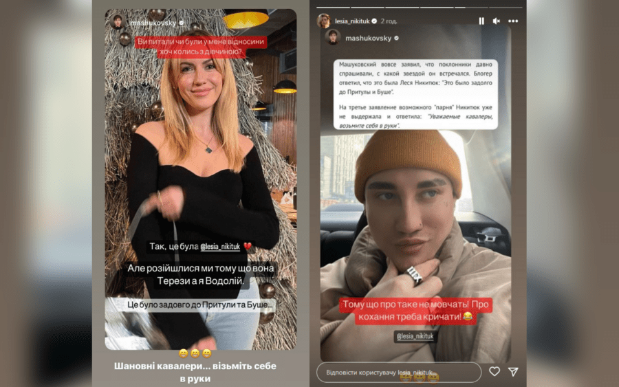 А ось блогер Олег Машуковський не втримався й зовсім вирішив “підіграти” чуткам про свій зв’язок з Нікітюк. Оскільки зірка нещодавно зізнався у нетрадиційній орієнтації, шанувальники цікавились, чи зустрічався він колись з жінкою. Машуковський жартома зазначив, що це була Нікітюк.