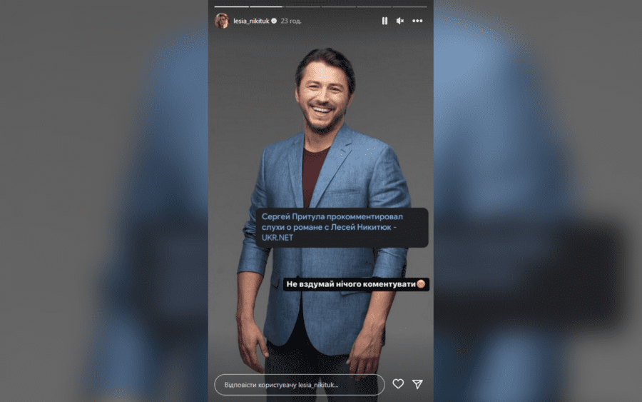 Не могла знаменитість оминути постать людини, з якою її “зводять” найчастіше. Так, Леся Нікітюк залишила заголовок новини про те, що Сергій Притула прокоментував свої стосунки з колегою. Телеведуча закликала його мовчати та навіть не думати про те, щоб розповідати всім правду. Проте, веселий смайлик в кінці звернення Нікітюк допоміг зрозуміти, що зірка жартує.