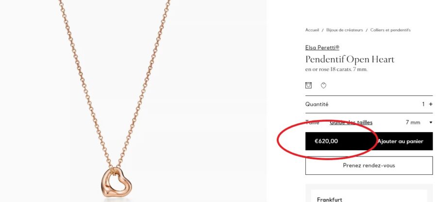 На сайті інтернет-магазину бренду така прикраса виставлена за 620 євро (якщо вибирати Францію). В гривнях це майже 25 тисяч гривень.