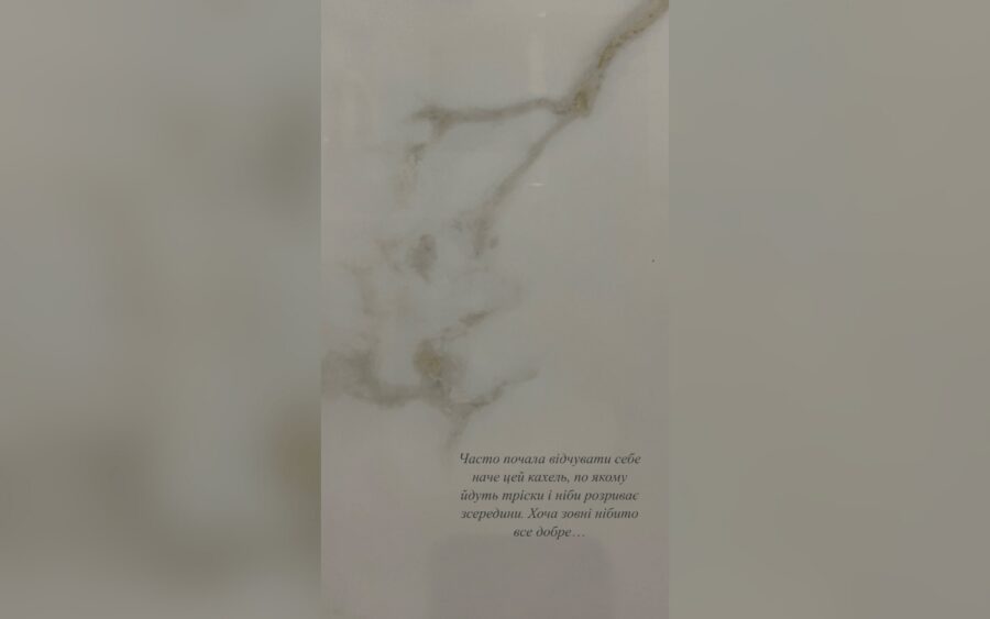 Хореографиня повідомила, що вона проконсультується з лікарями щодо стану свого організму, оскільки сказати напевно про причини такого погіршення здоров’я знаменитість не може. Втім, припускає Ілона Гвоздьова, всьому виною міг стати сильний стрес. Зірка опублікувала фотографію кахелю з мармуровим дизайном і зазначила, що часто почувається так само.