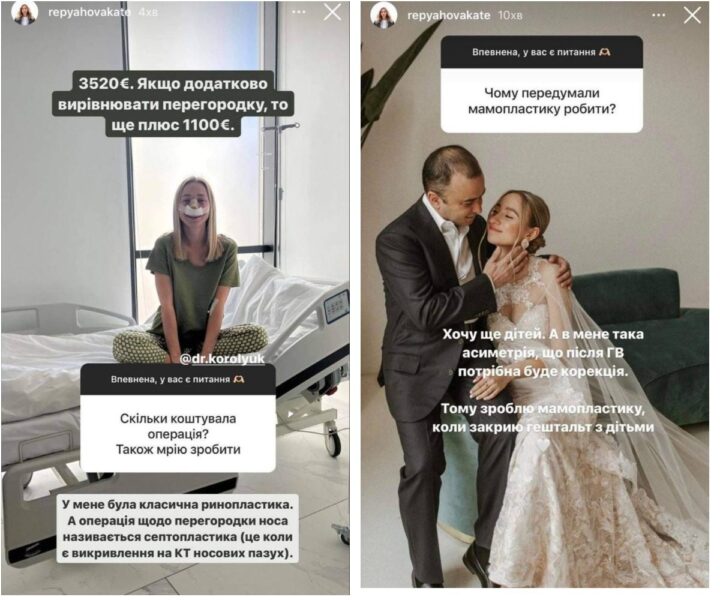 Катя Репяхова розповіла, скільки їй коштувала пластична операція