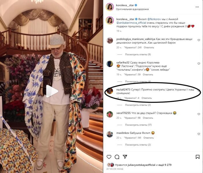 Реакція шанувальників була бурхливою на те, що Наташа вирішила подарувати Кіркорову. Деякі люди помітили українські мотиви в одязі, деякі висміяли за жіночі подарунки чоловіку: