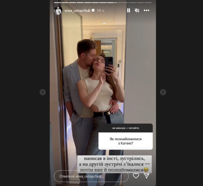 Чоловік не пожартував, Катя раніше теж розповідала, що вже на другій зустрічі переїхала до Остапчука.