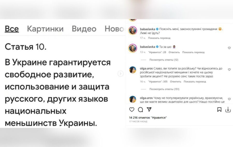 А ось Слава Камінська про повернення в Україну навіть не замислюється. Про це вона нещодавно повідомила на особистій сторінці в соціальній мережі Інстаграм. Артистка опублікувала новий допис, в якому процитувала Статтю 10 Конституції України – в країні гарантується вільний розвиток та використання мов нацменшин, зокрема, російської мови.