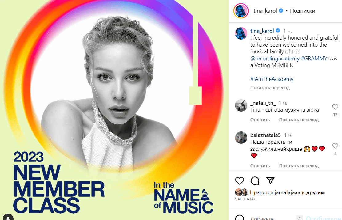 Тіна Кароль – не перша українська зірка, яка стала членом журі музичної премії Grammy, що голосує. 2021 року цю високу місію виконувала скрипалька Ассія Ахат. Претендентів на премію обирають судді, подають кандидатури організаторам. А ті вже вивчають біографічні дані музикантів, чого їм вдалося досягти на музичних теренах і лише тоді доходять до відповідного рішення.