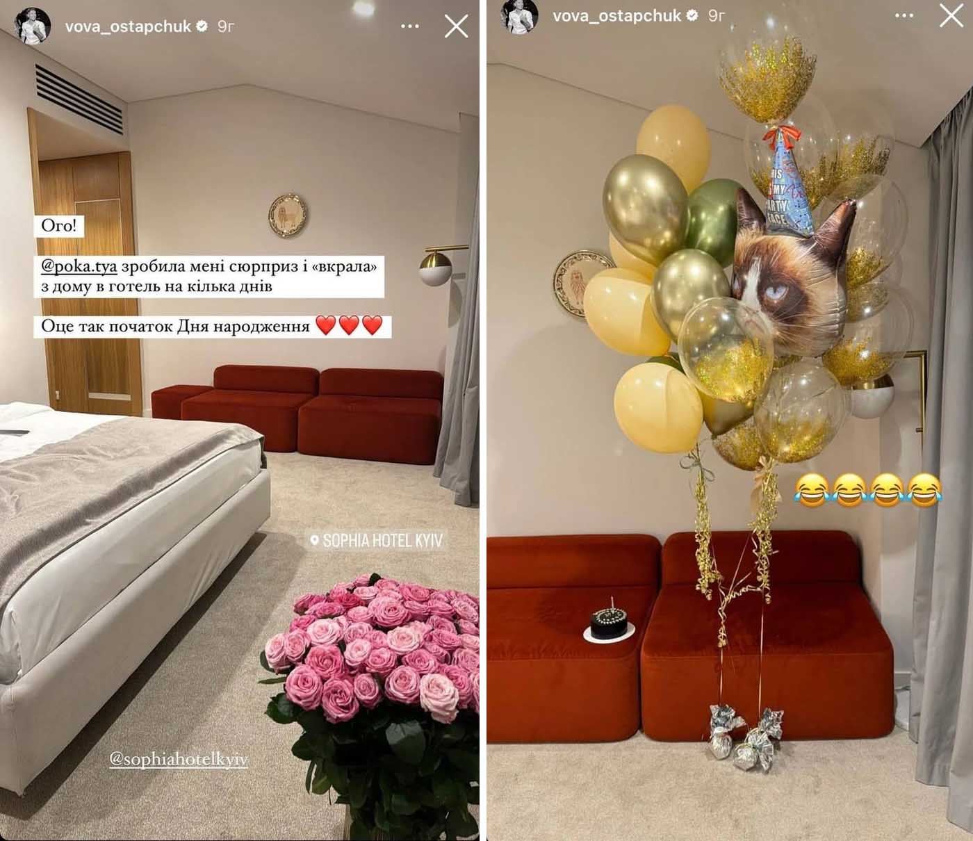 Володя з Остапчук із Катею Полтавською живуть разом уже довгенько. Та, схоже, й досі не перейшли зі стадії романтичних стосунків у рутину буденності. От і з нагоди дня народження коханого 23-річна блогерка підготувала купу несподіваних подарунків.