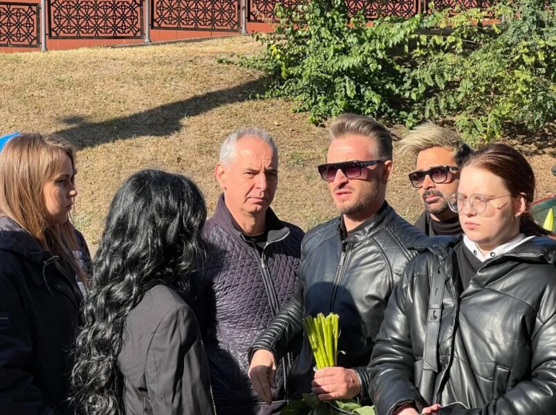 Біла труна стоїть в центрі фойє, зал заставлений живими квітами. Рідні співачки не стримують емоцій на церемонії прощання. Біля труни стоїть донька Матвієнко Тоня та її чоловік Петро Гончар.