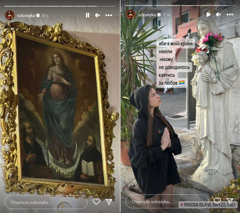 Далі Соловій повідала цікаву пригоду – дівчина спромоглася заблукати на малюсінькому острові. Врешті знайшла орієнтир – базиліку, тож проблему було вирішено. До речі, біля статуї Діви Марії Христина опустилася на коліна й стала благати святу: