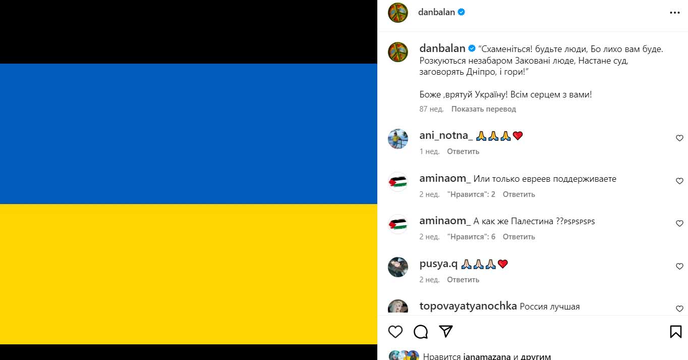 На початок повномасштабного вторгнення росіян Дан теж перебував в українській столиці. 27 лютого він виклав на свою сторінку в Інстаграмі світлину з українським прапором і словами підтримки. Після того артиста українці більше не бачили.
