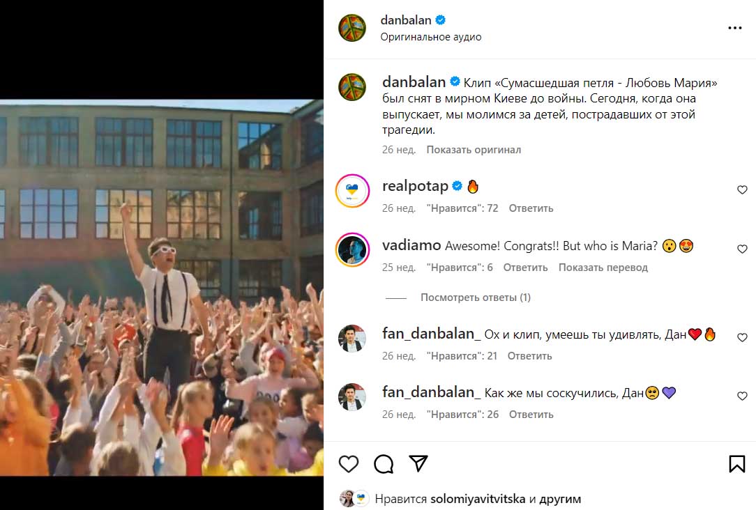 Далі запанувала тривала мовчанка ще на 8 місяців. А потім артист виклав кліп на композицію “Божевільна петля – Любов Марія”, знятий ще у мирному Києві зі школярами, які весело підспівують і підтанцьовують співаку.