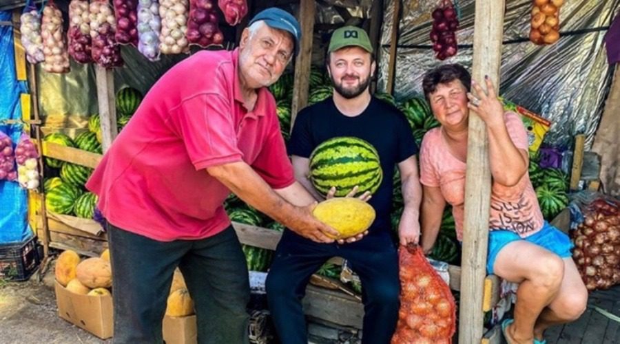 Ще однією яскравою зіркою, що відвідує продуктові ринки, є наш Михайло Хома. У мережах можна знайти фотографії Михайла з Херсонського ринку, які, як здається, були зроблені ще до повномасштабного вторгнення. Артист підписав цю фотографію, питаючи своїх прихильників, що б вони хотіли отримати з Херсону.