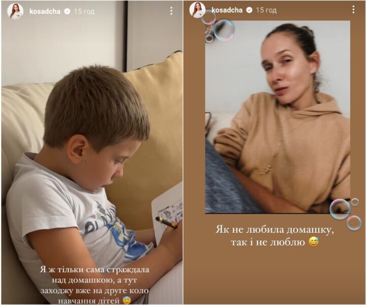 Чоловік грався з маленьким Данилом та підрослим Іваном, а ось самі Осадчій дісталася складніше роль – вчити з старшим сином уроки.