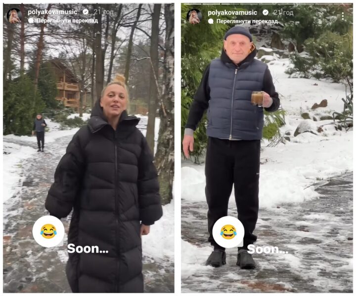 Та нещодавно Буряковський випадково потрапив в кадр, коли Полякова знімала свій відеоблог. Так, співачка знімала відео на тлі свого будинку і розповідала, що має намір приготувати плов. В цей час позаду Олі вийшов її чоловік з чашкою в руках і, побачивши, що дружина знімає відео, застиг і не ворушився.