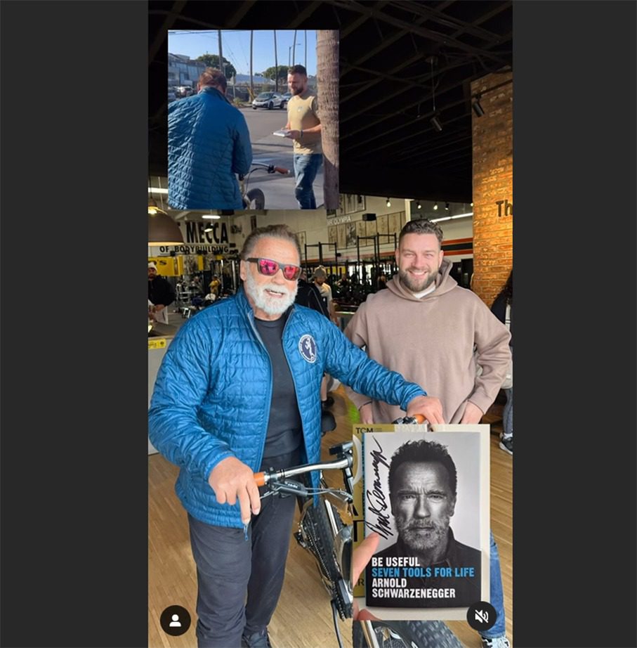 Богдан Юсипчук похвалився у мережі Інстаграм спілкуванням з Арнольдом Шварценеггером. Український нелегітимний біженець отримав від знаменитості відразу 2 книги з портретом актора.