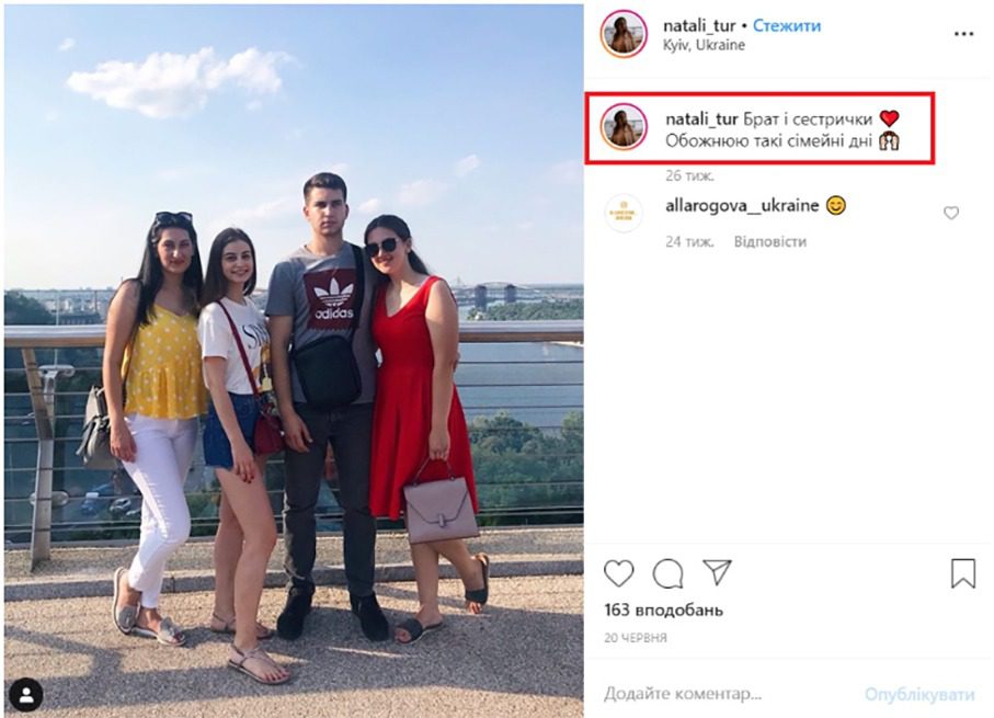 Схоже, між Барбарою та Наталкою склалися гарні стосунки, оскільки, вітаючи зовицю з днем народження, Кузьменко назвала її “рідною людиною”. На сторінці в Інстаграмі журналістки є світлина Віктора з трьома дівчатами й підпис, що це брат із сестрами.