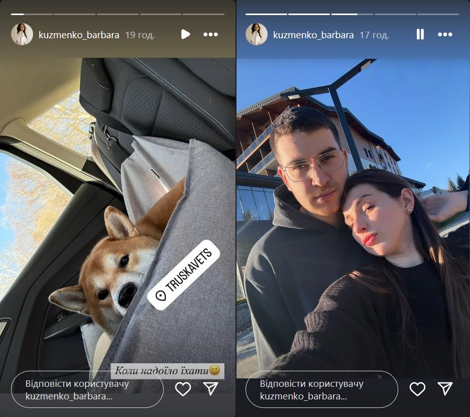 Барбара в Інстаграм-сторіз зробила репортаж із Трускавця. Показала санаторій, в якому зупинилися з чоловіком та песиком Мішею. Дуже нахвалювала довколишні краєвиди. Отже, відпочинок має піти на користь і додати доньці Скрябіна ще трішки краси. Хоча куди вже більше?!