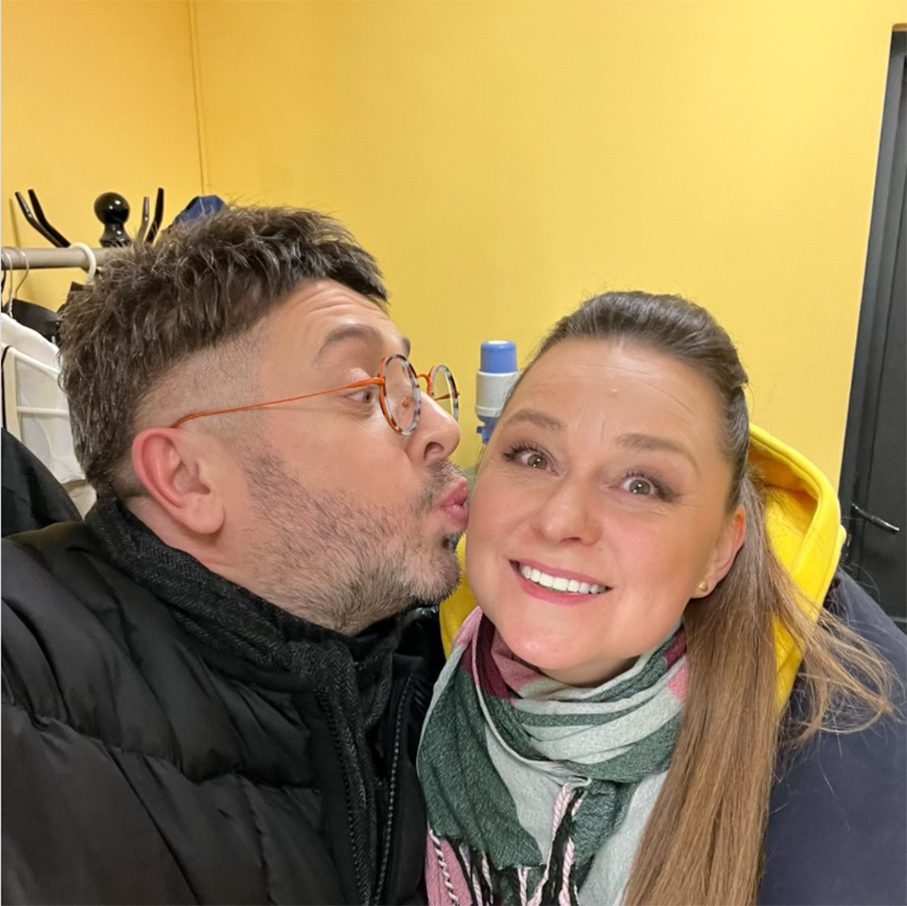 Олексій Суханов показав у своєму Інстаграмі, як надміру тепло спілкується зі знаменитостями. Зокрема, з Віталіною Біблів показався у гримерці. Ведучий ніжно торкнувся губами щічки акторки, натякнувши: