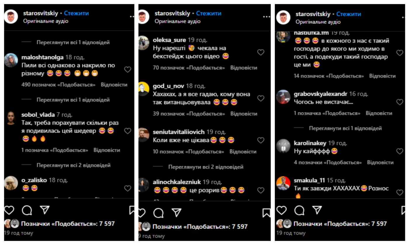 Так, наприклад, хтось називав Олю Полякову Брітні Спірс “на мінімалках”, а хтось пожартував про те, що співачка таким чином намагається нагадати про себе. Крім того, одна з підписниць гуморного блогера Старосвітського зазначила: