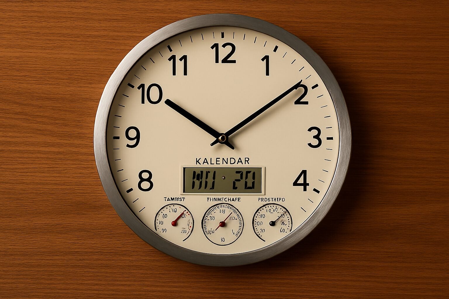 У настінний годинник може бути вбудований календар, який показуватиме сьогоднішню дату, день тижня та місяць. Кому треба, обере собі з термометром, щоб стежити за температурою повітря.