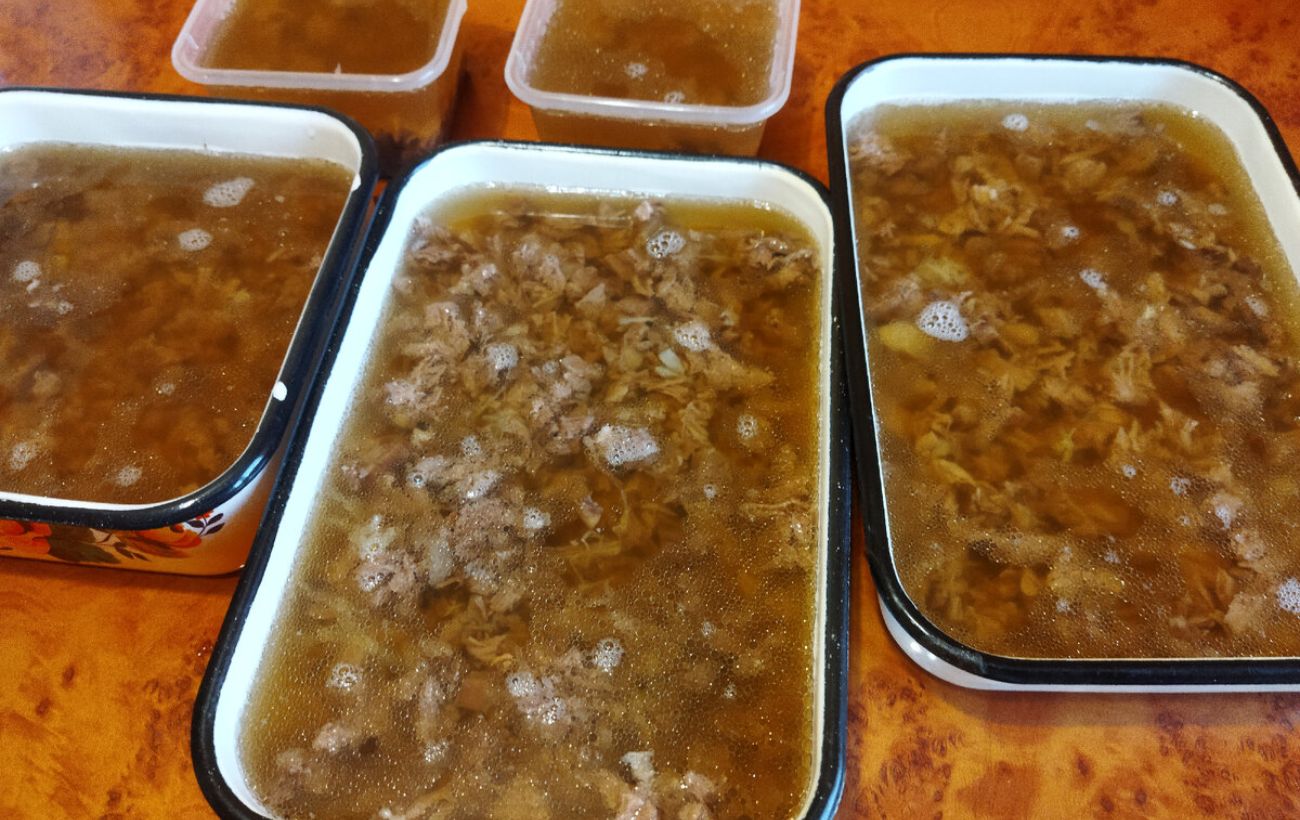 Складайте місткості з холодцем на нижню поличку холодильника. Саме там температури стабільно, що дуже важливо. Тримайте протягом 3-5 днів. Більше не можна – у такому разі знадобиться заморожування, що може вплинути на структуру страви. До речі, тримати на столі протягом кількох годин холодець не можна. Якомога швидше поверніть його до холодильника, щоб желатин стабілізувався.
