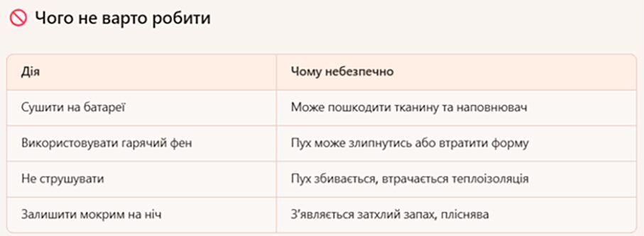 Джерело тепла – батарея чи обігрівач – не повинні торкатися вашого верхнього одягу. У такому разі дуже просто зіпсувати матеріал куртки чи наповнювач. Аби покращити доступ повітря до мокрої куртки, відчиніть вікно чи увімкніть вентилятор.