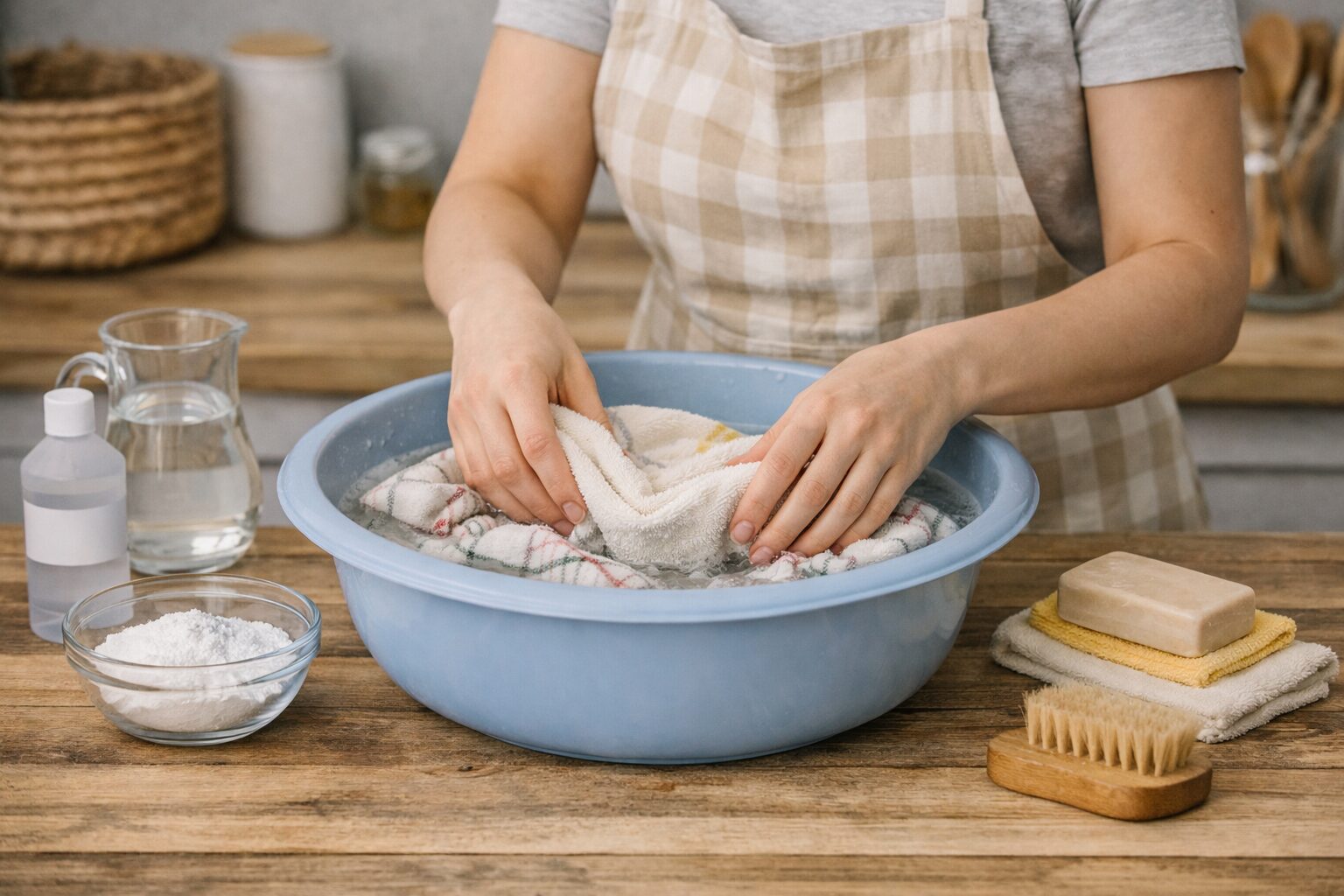 Аби підсилити ефект, до господарського мила можете додати 1 ч.лож. лимонної кислоти. Так не лише плями краще виводитимуться, але й зникне жовтизна. Для пом’якшування тканини можете додатково влити 1 ст.лож. оцту. Це потрібно для замочування рушників перед процедурою очищення. А ще, намиливши рушник, можете присипати його содою чи змочити засобом для посуду.