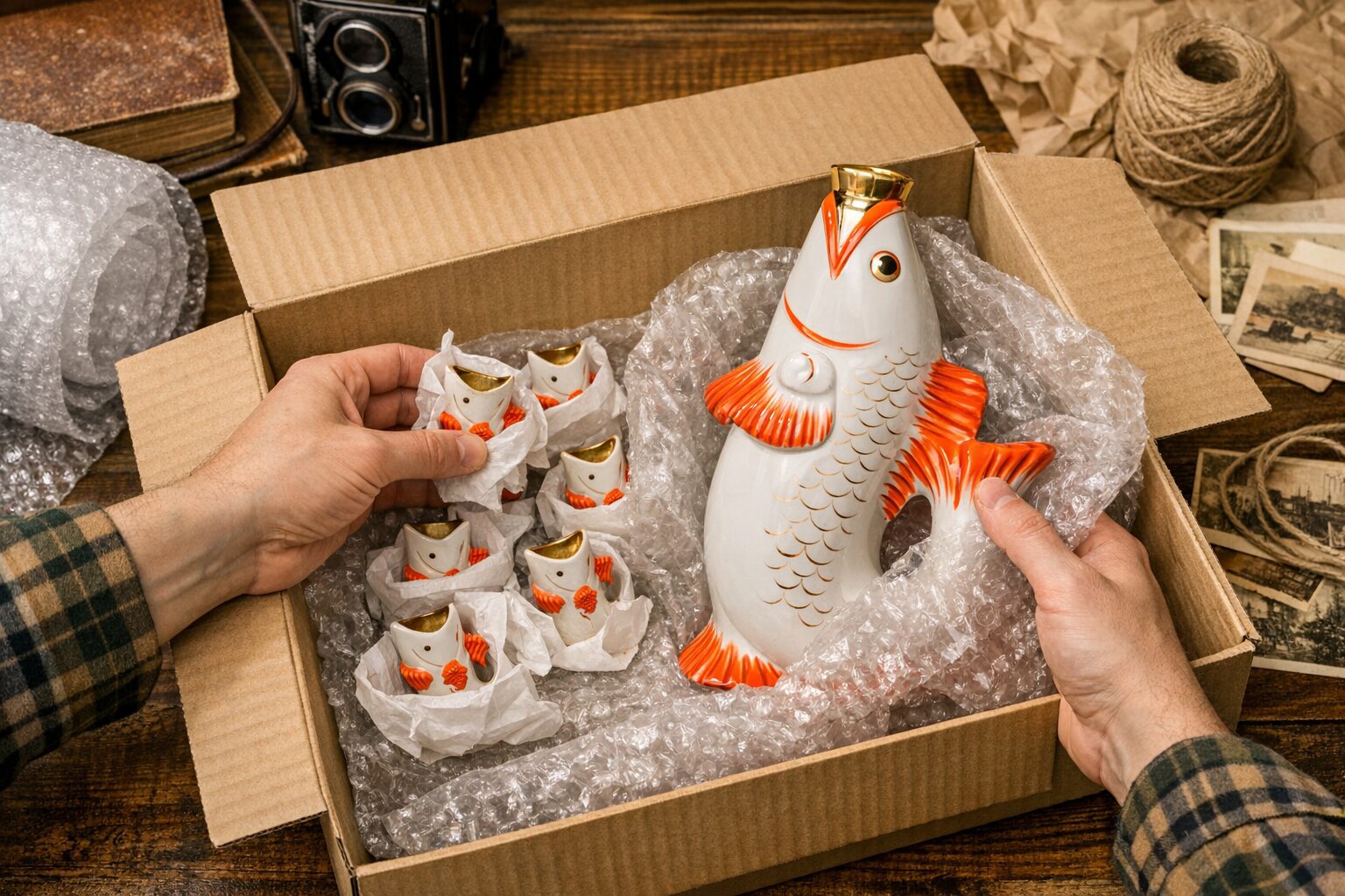 Майже у кожному радянському серванті можна було побачити фарфоровий сервіз “Рибки”, що складався з графинчика та 6 чарок у вигляді рибин, що дивляться вгору, роззявивши роти.