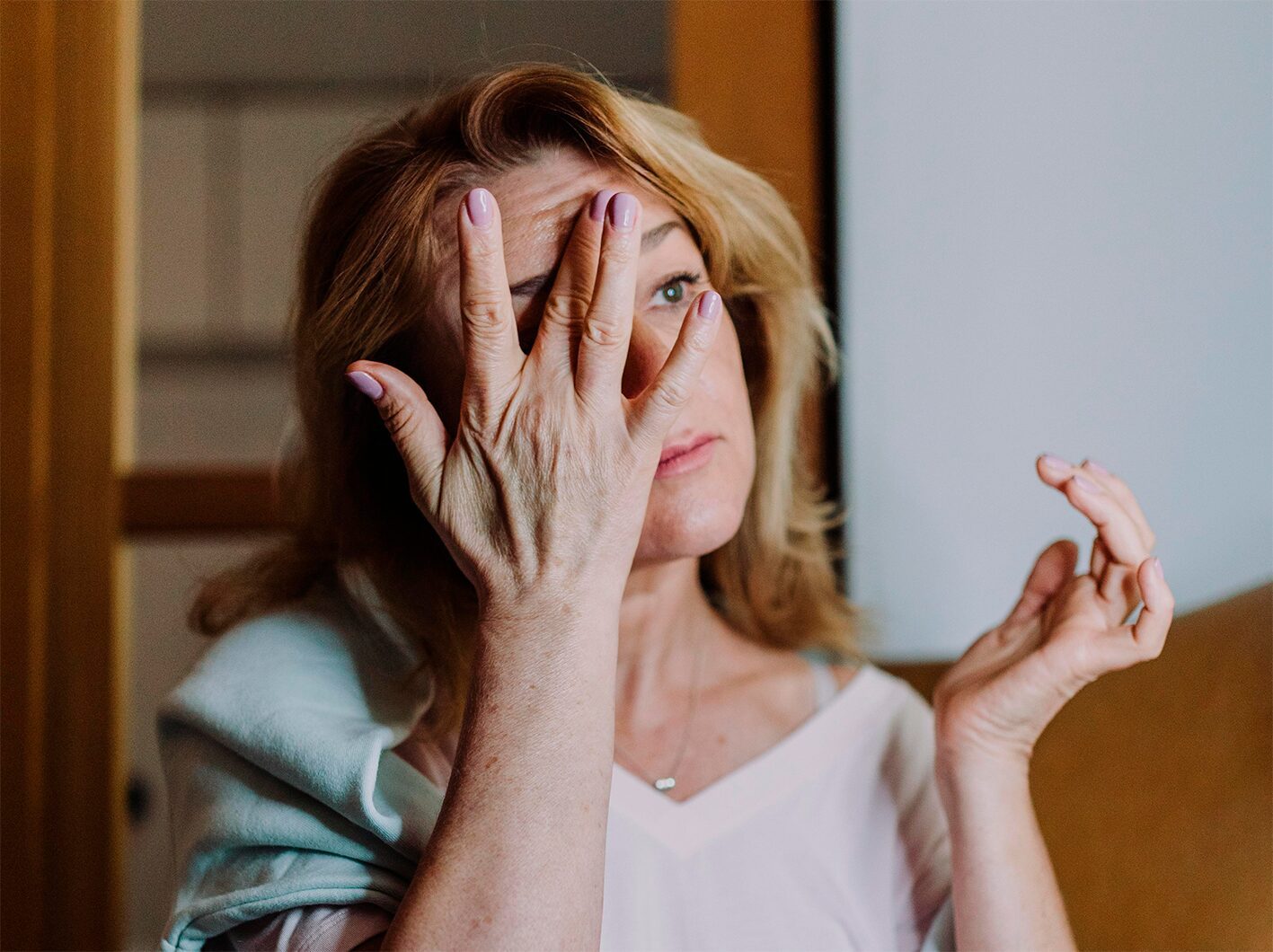 Налийте в мисочку теплу воду. Додайте в неї 1 ч.лож. солі. Розмішайте, щоб кристали розчинилися. Занурюйте обличчя в розчин на 20 секунд. Потім робіть 30-секундну перерву й знову повторюйте процедуру. Повторюйте так не менше 15 разів, аби досягнути бажаного ефекту.